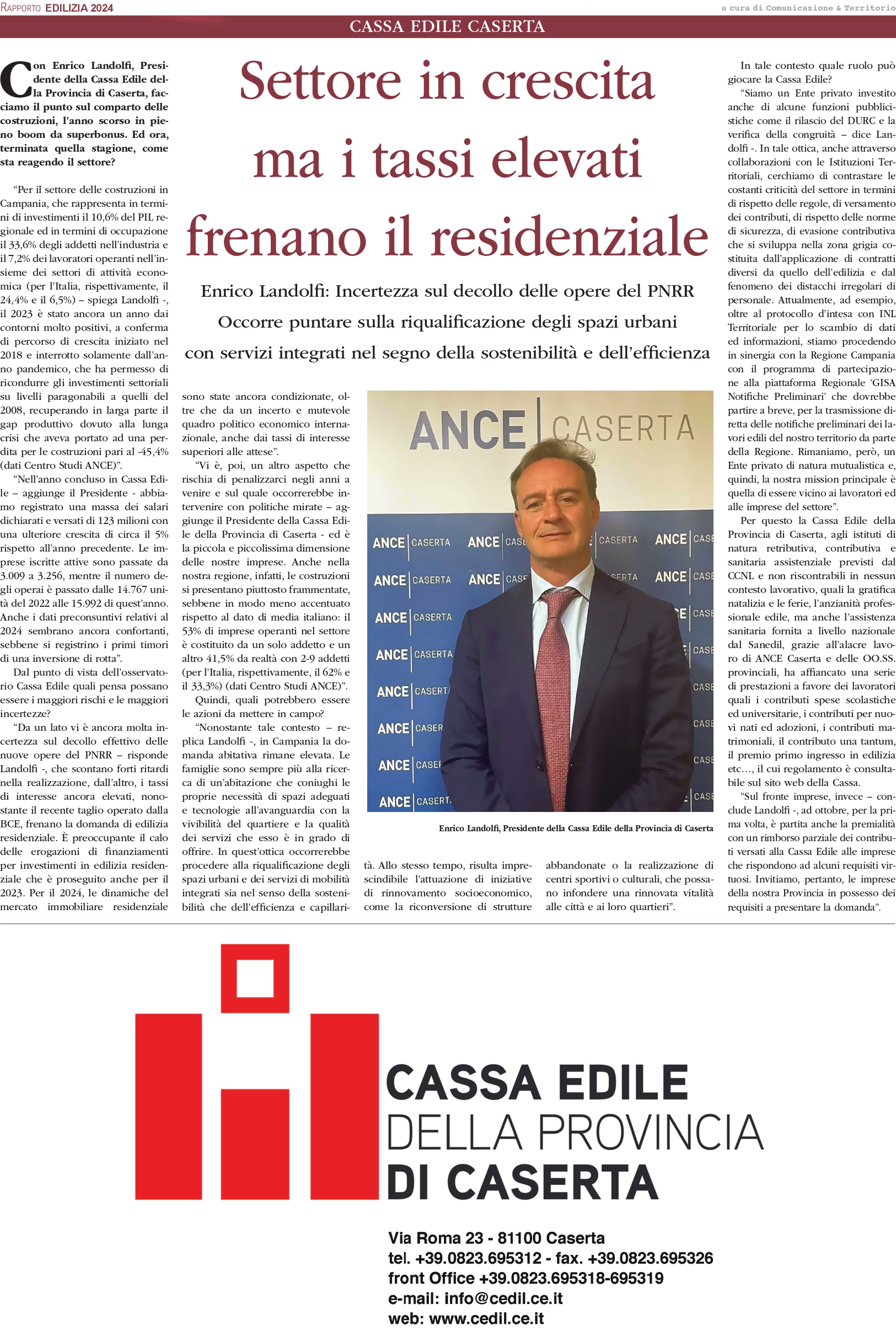 La Repubblica: intervista al Presidente della Cassa Edile di Caserta, Enrico Landolfi
