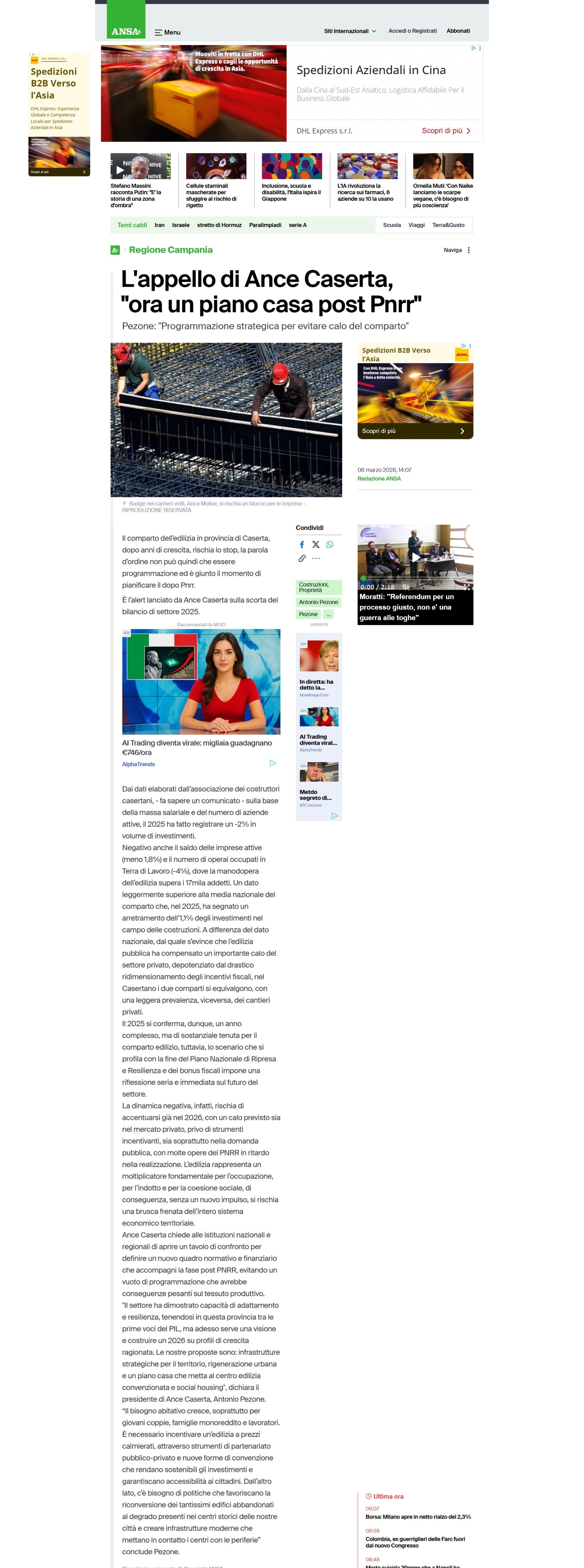 L'appello di Ance Caserta: "ora un piano post Pnrr"