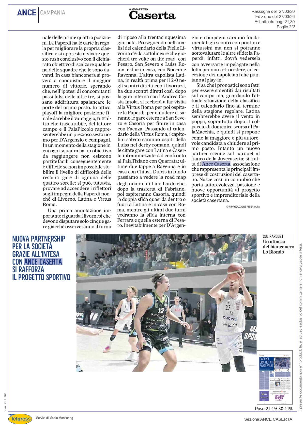 ANCE Caserta scende sul parquet al fianco della Juvecaserta